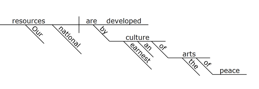 Mrs. Early started with simple subject-verb-object construction. When she added indirect objects, direct objects, conjunctions, and prepositional phrases, well, my lines ran off the page. If you don’t know how a diagramed sentence looks, a simple Google search offers a snapshot.